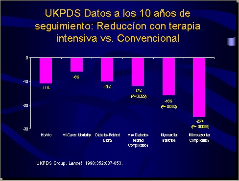 Tamaño completo Figura 2. UKPDS, datos a los 10 años de seguimiento: Reducción con tratamiento intensivo vs. convencional.