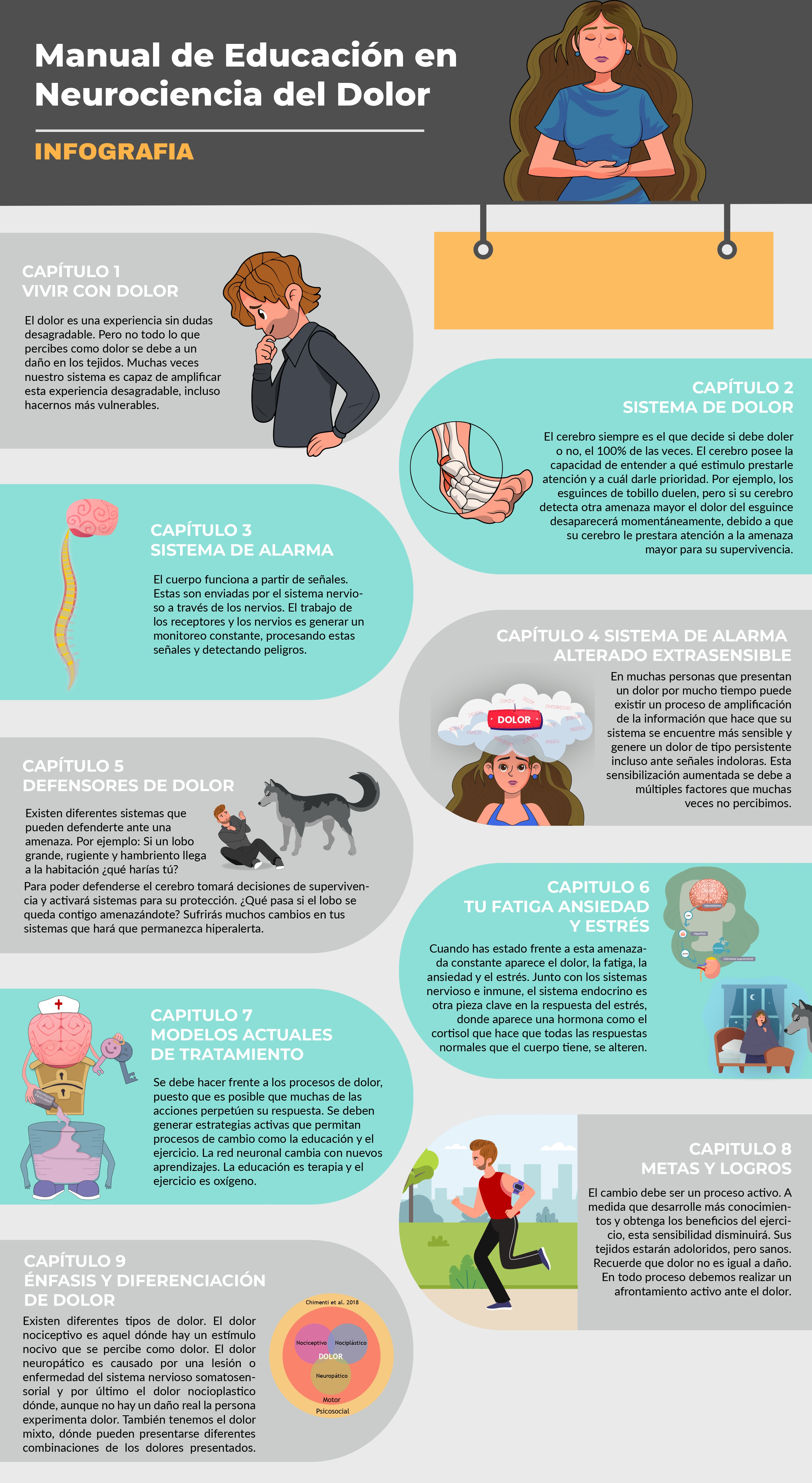 Instructional materials, adapted from the Manual de Educación en Neurociencia del Dolor, will be evidence-based and culturally tailored [19]. Prior to trial initiation, these materials underwent structured patient validation sessions with individuals from the target population,during which iterative refinements were made based on participant feedback regarding clarity, cultural relevance, and applicability. A detailed outline of the pain neuroscience education session content is presented in Figure 1.