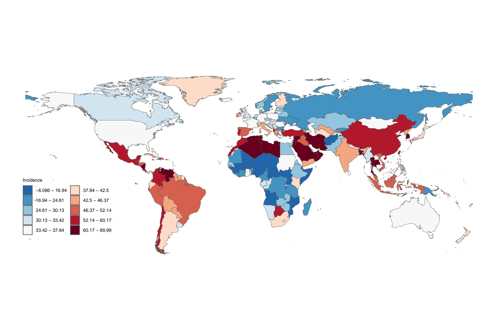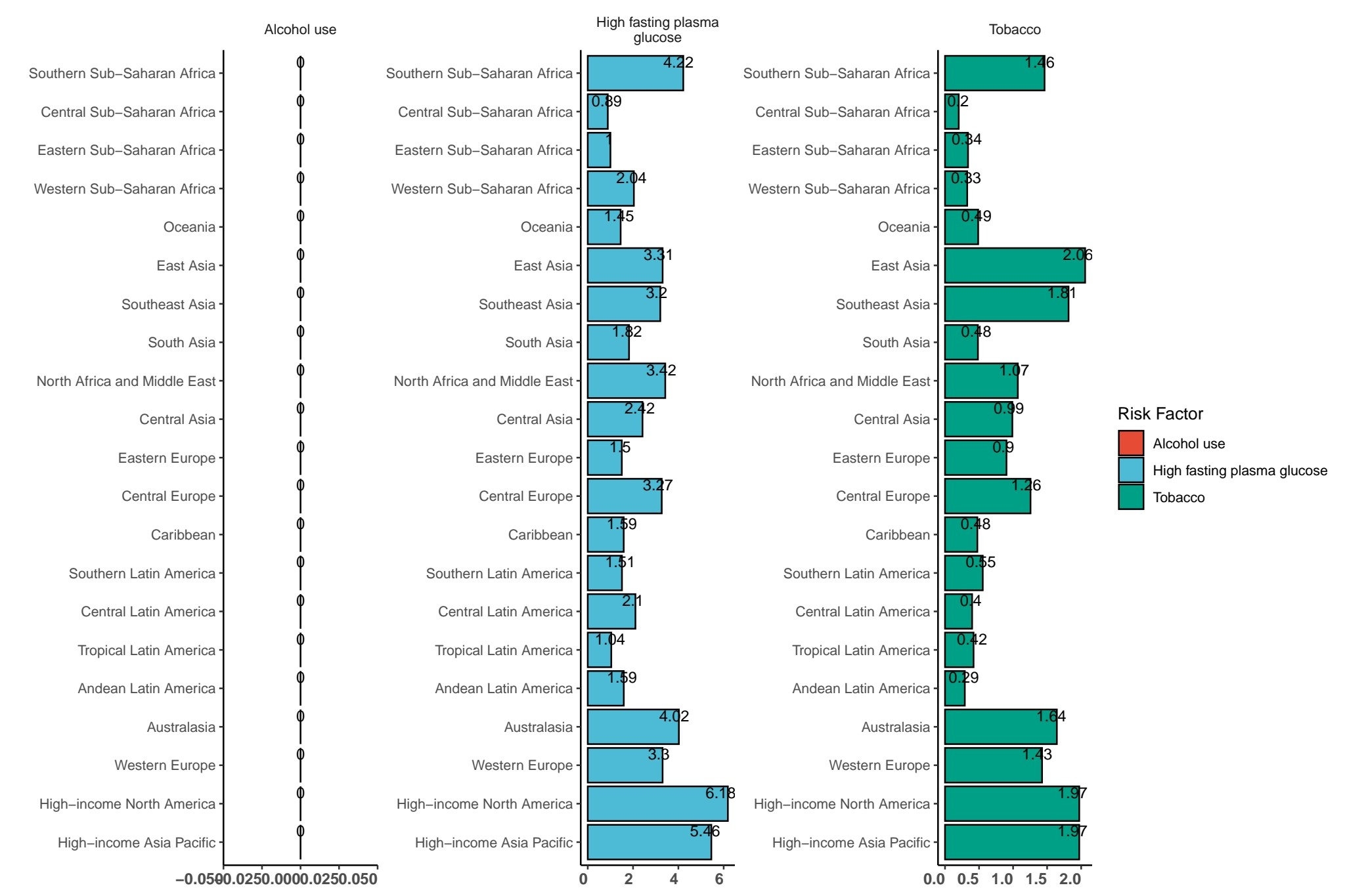 - Key risk factors include hyperglycemia (predominant in high-Socio-Demographic Index nations) and smoking (prominent in low/middle-income regions).
